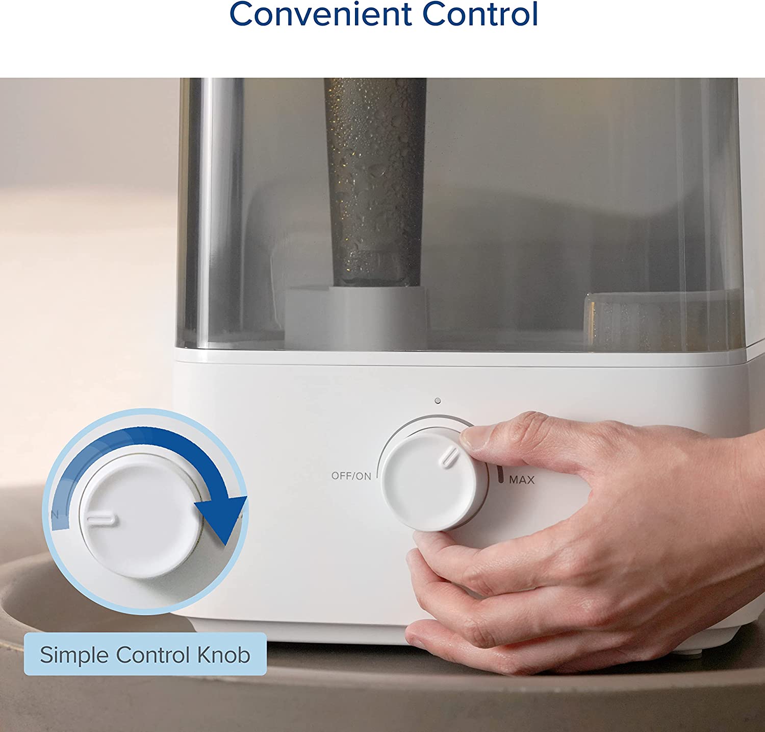 - Quickly adjust the mist level to your liking with the easy control knob and direct the 360° rotating nozzle to the perfect spot.