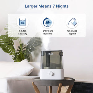 LEVOIT Humidifier for Bedroom Large Room, 6L Top Fill Cool Mist Humidifiers Plants, Baby, Lasts Up to 60h, Easy Use and Clean