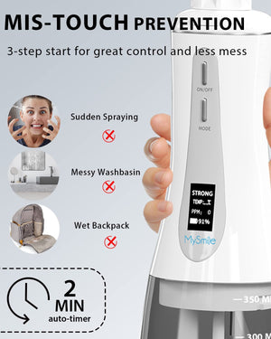 • 350 ML Detachable & Leak-proof Water Tank- 350ml upgraded water tank design for uninterrupted oral dental flossing, more 75% large-capacity