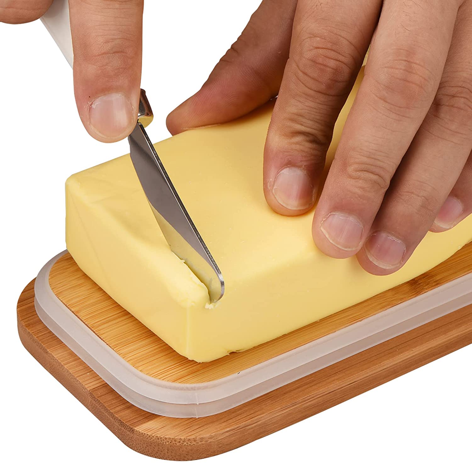 - 3. Bamboo lid and food-grade silicone ring are excellently isolate the air, light and the taste of other food in fridge, keeping butter fresh.