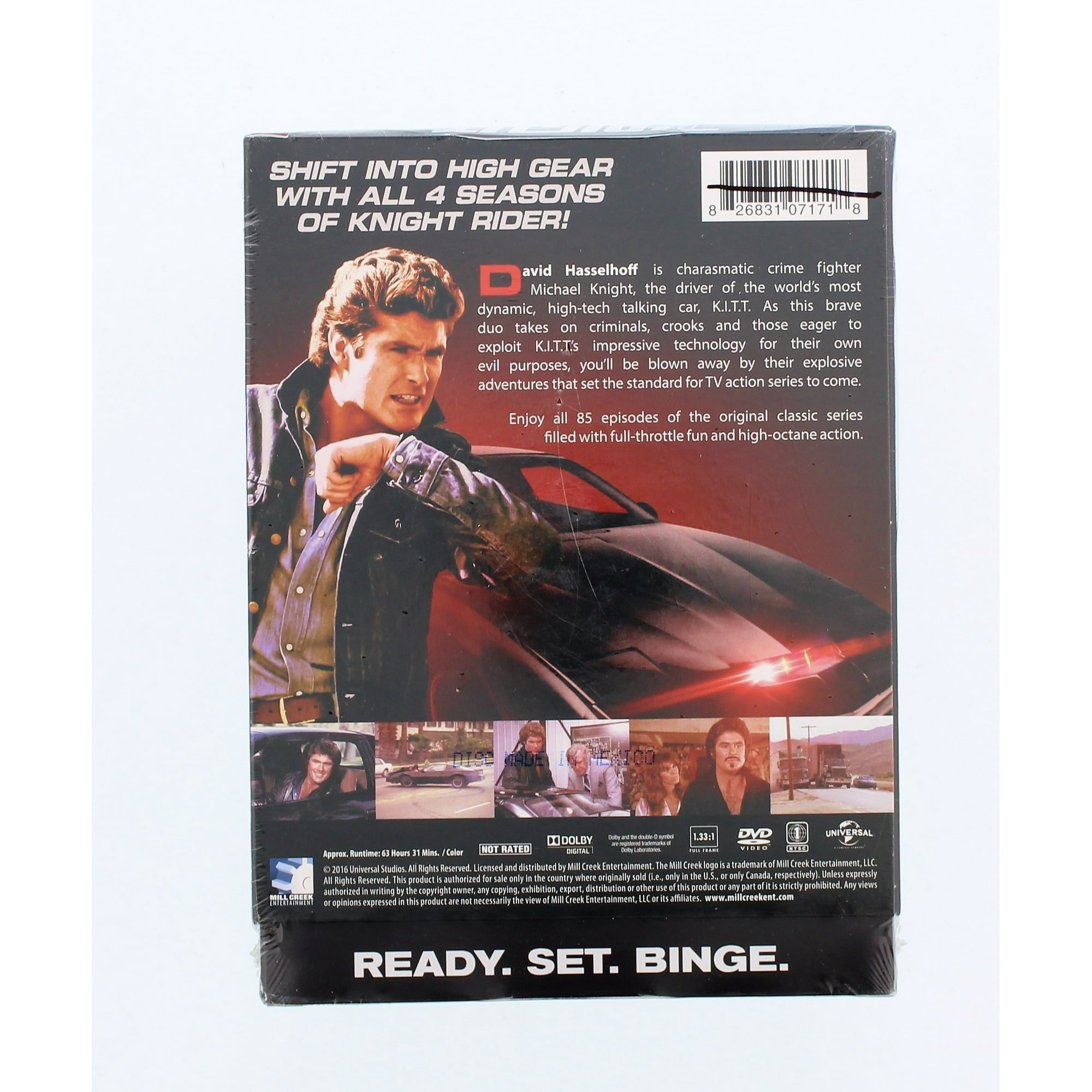 Hit the highway with Knight Rider: The Complete Series (DVD). This definitive collection includes all episodes from the iconic 1982–86 series starring David Hasselhoff as Michael Knight and his intelligent, turbo-charged car KITT. Fully remastered and packed with bonus material, it’s the ultimate must-have for fans of classic ‘80s action and adventure.