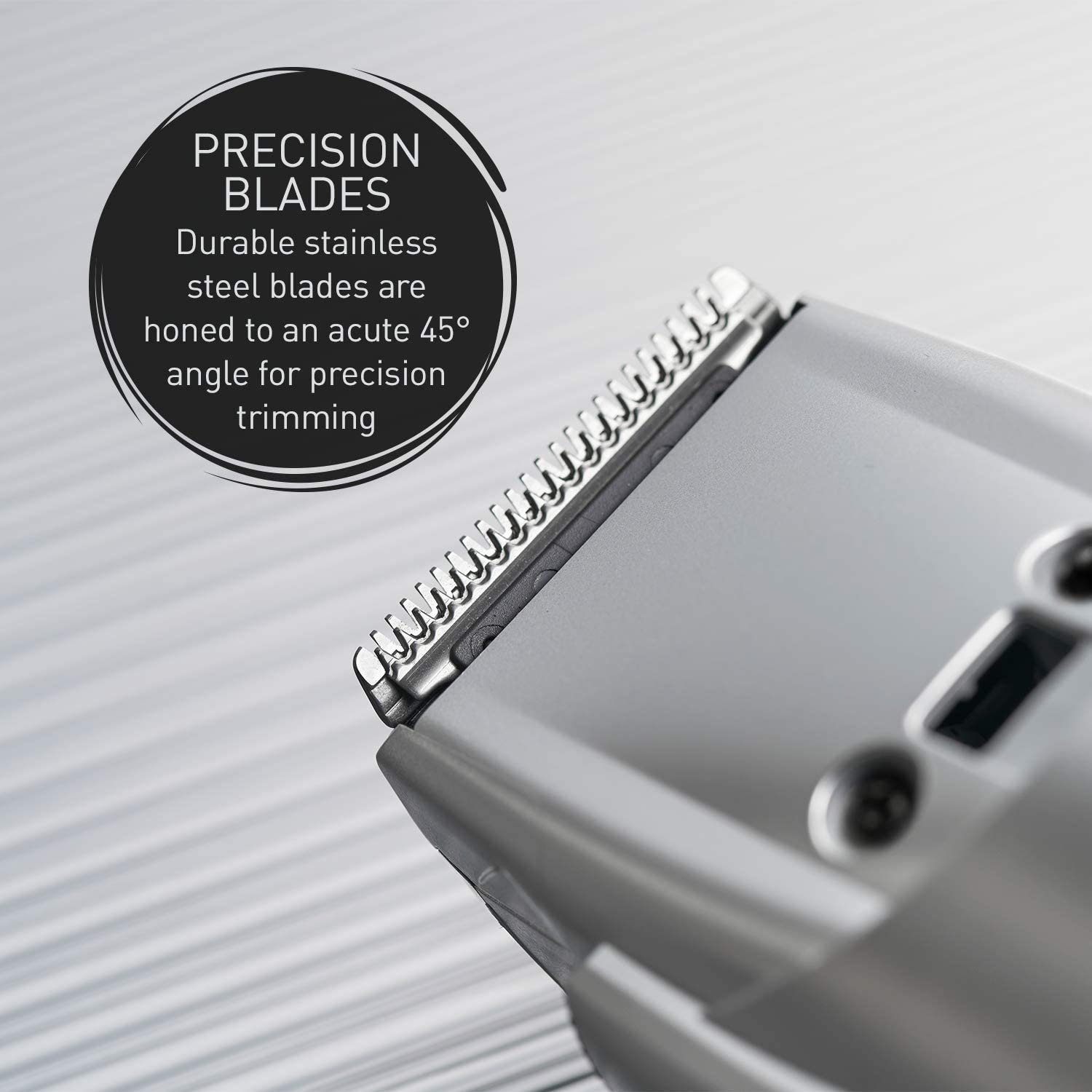 - Precision 45° blades: Uses durable, super sharp 45° angle stainless steel, hypoallergenic blades to cut quickly and cleanly for efficient beard, mustache and hair trimming