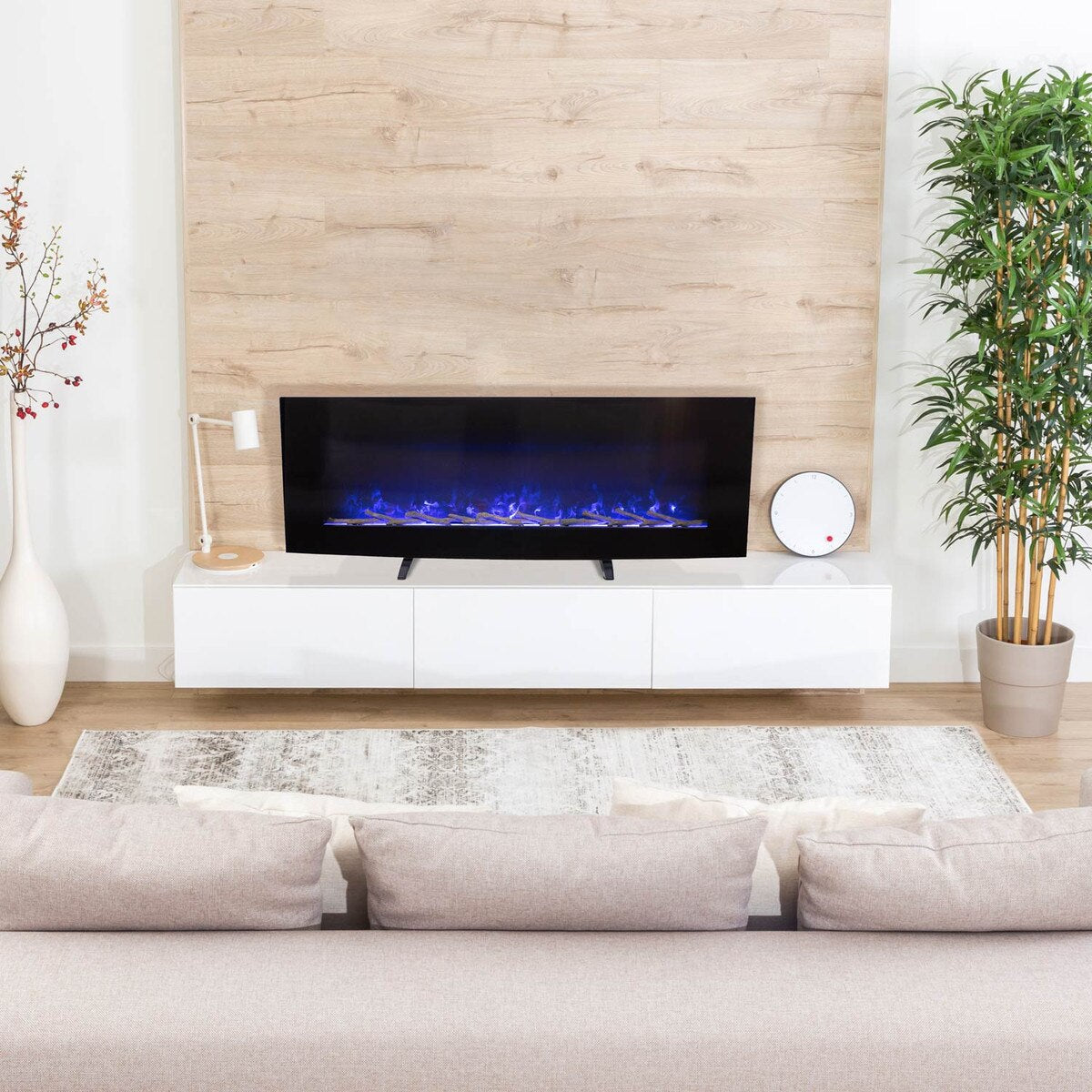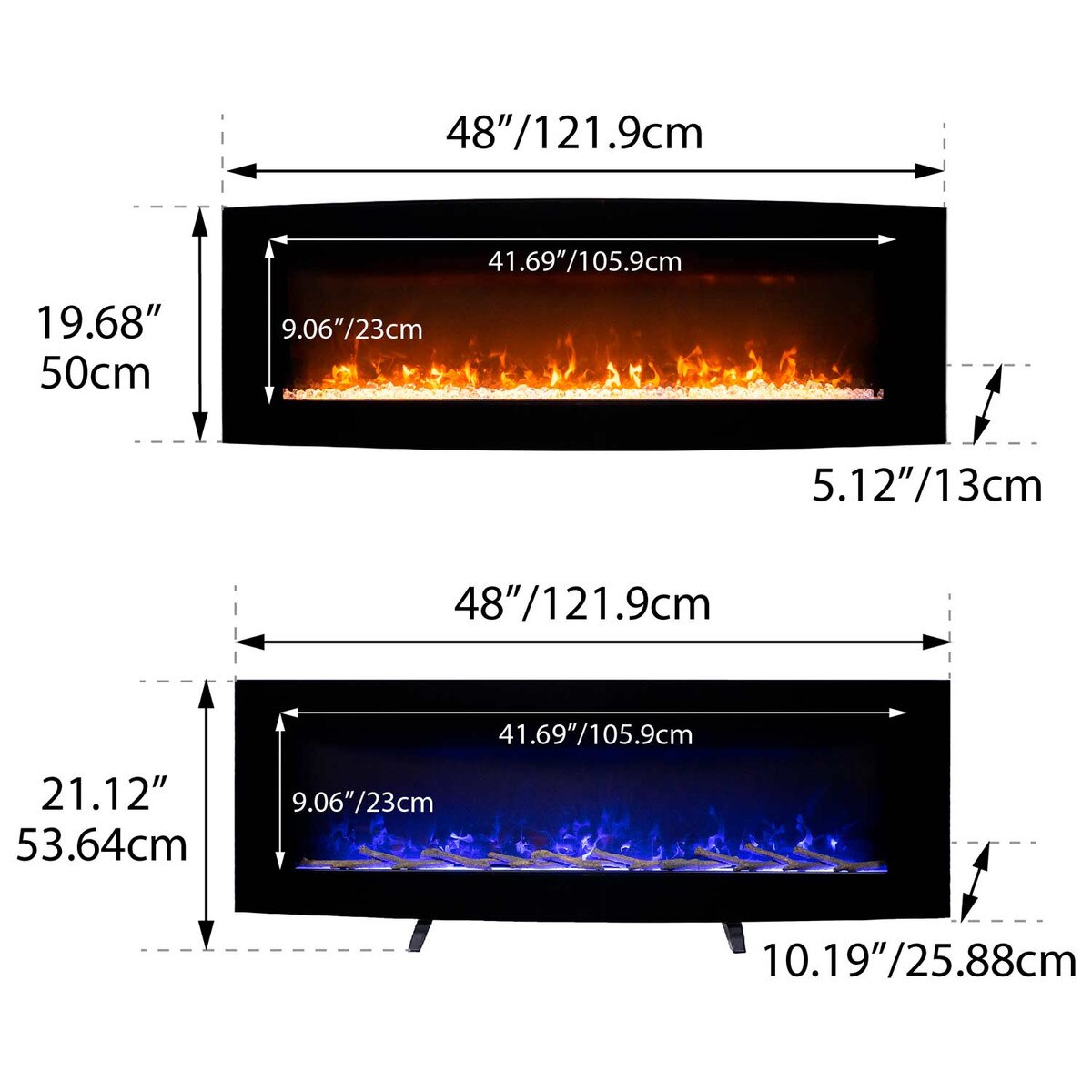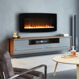 There's nothing quite like coming home after a long day, kicking off your wet boots, and cuddling under a blanket next to the fireplace to warm up. This stunning curved electric fireplace will heat you up in no time, and you don't need to stoke any fireplace logs to stay warm. This fireplace uses energy efficient LED technology to provide beautiful flames and glowing stones. Choose from the included media beds, crystal, logs and stones to match your space. It also features safety thermal cut-off and 8 hour timer for worry-free use.