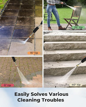 - 【Durable & Safety Design】Newly upgraded electric pressure washer extends the life of the pump. More durable while enhancing the efficiency of use. Safe child lock design to prevent children from accidental operation, when not pulling the trigger, the power washer automatically shuts down to prolong the life of the washer.