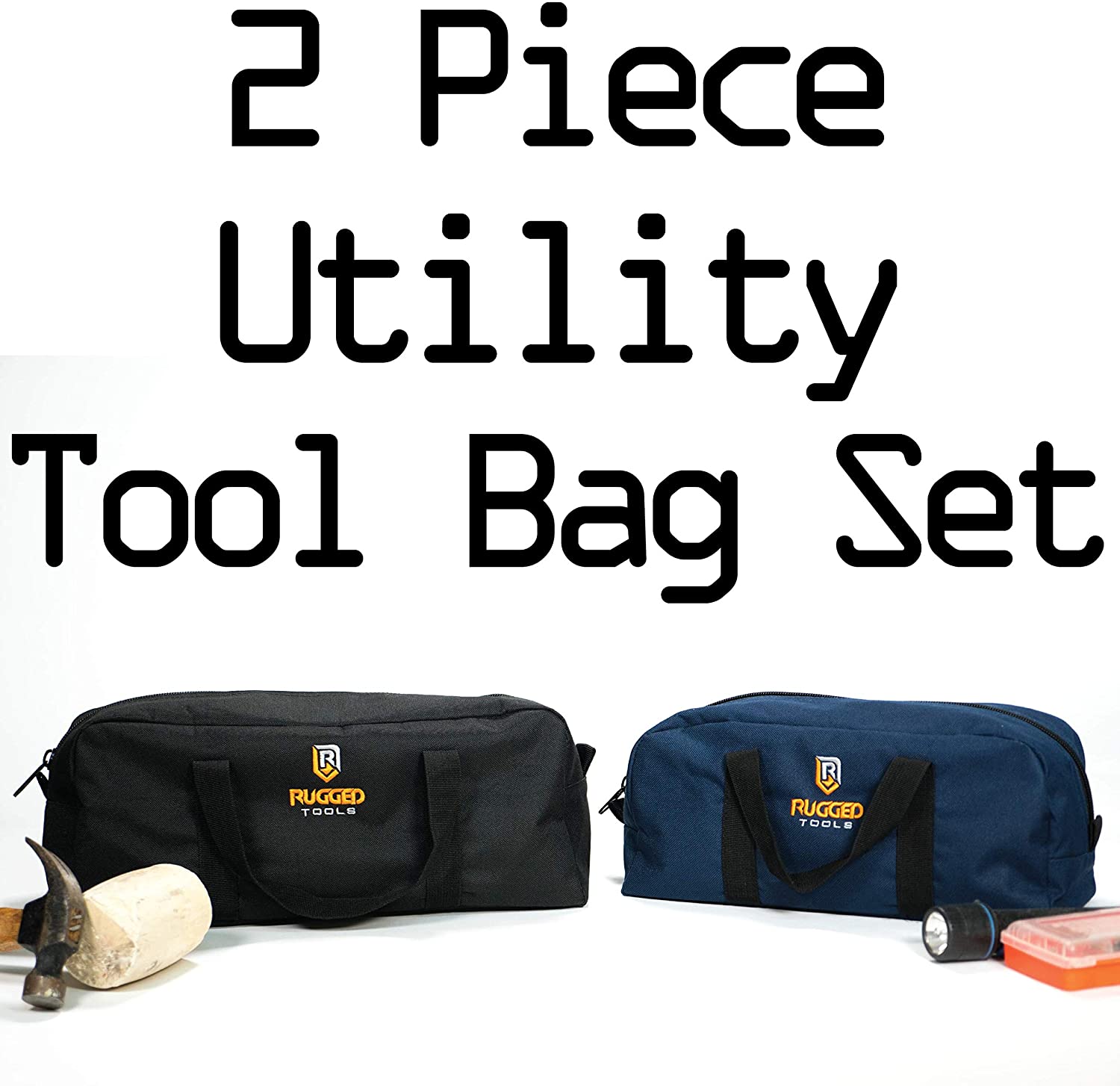 Rugged Tools Tool Bag Combo - Includes 1 Small & 1 Medium Toolbag - Organizer Tote Bags for Electrician, Plumbing, Gardening, HVAC & More