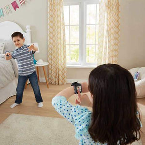• Cool, kid-friendly DX3 features dual cameras for photos and videos; watch light is camera flash or flashlight