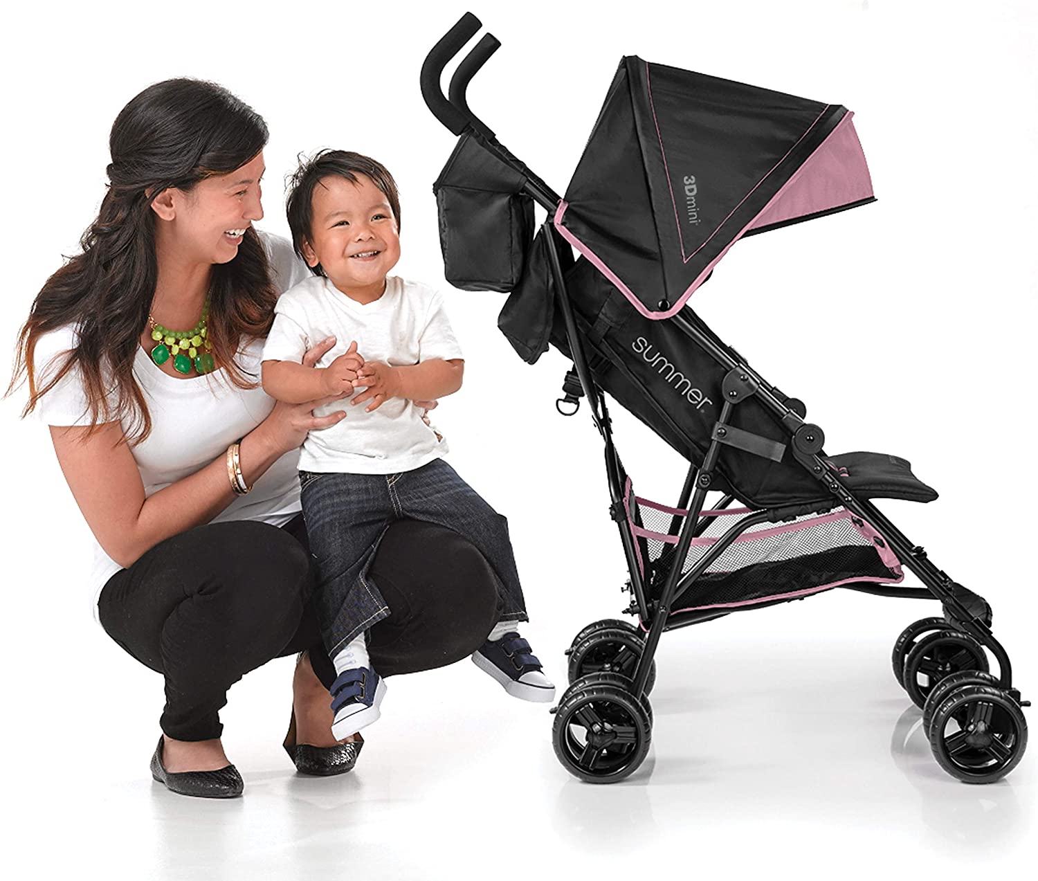 Summer 3Dmini Convenience Stroller, Pink Lightweight Infant Stroller with Compact Fold