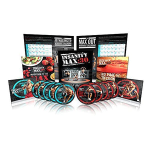 INSANITY MAX:30 includes 12 workouts on 10 DVDs, MAX OUT Guide, Nutrition to the MAX, MAX OUT Workout Calendar, AB MAXIMIZER Workout Calendar, and No Time to Cook Guide.