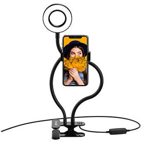 The 360-degree flexible gooseneck allows for positioning in any angle, while its clip-on base easily attaches to desk edges and doors. You will be able to create great videos at night or take awesome selfie photos in dark areas with the ring light.