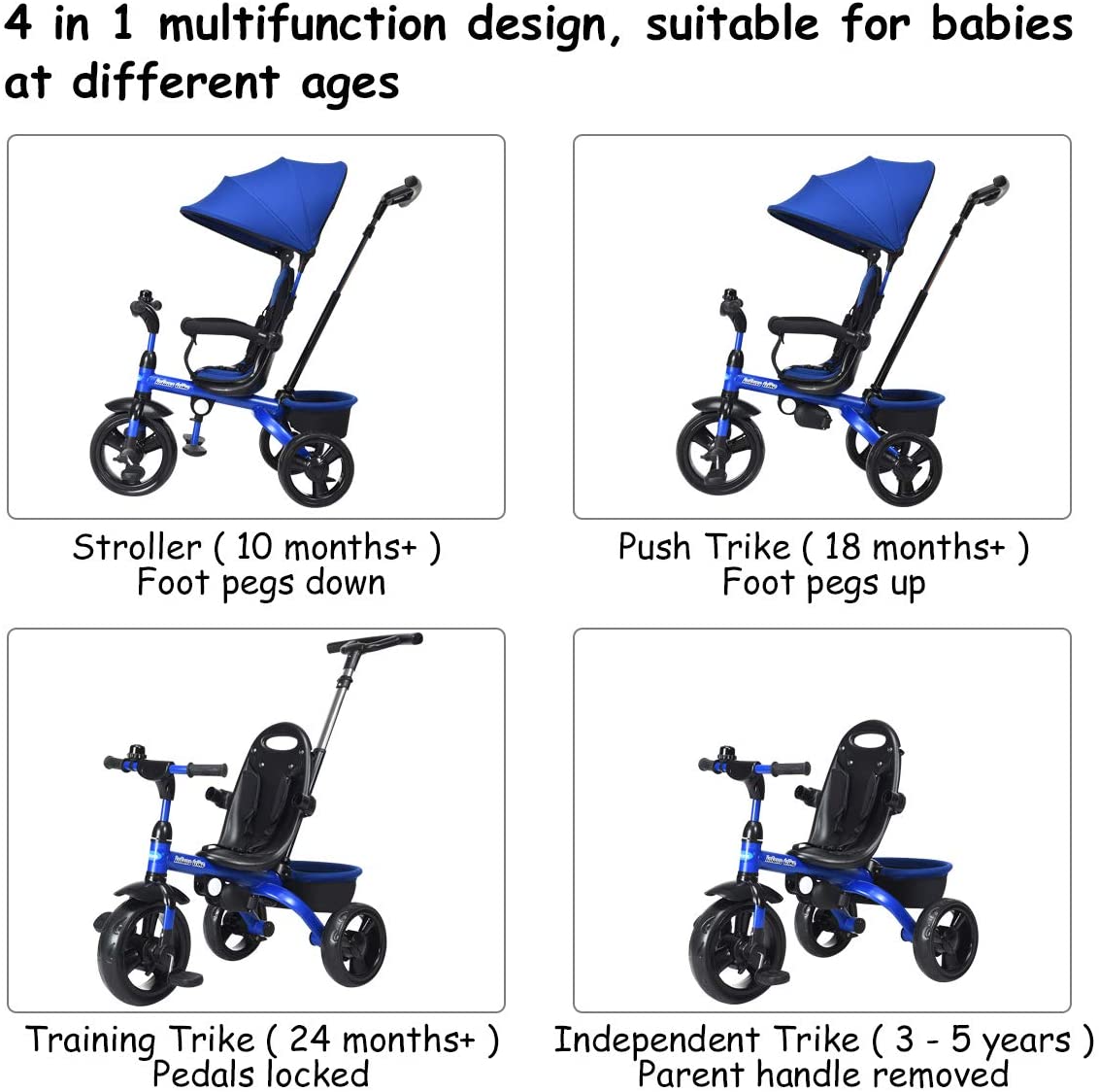 INFANS Kids Tricycle, 4 in 1 Stroll Trike with Adjustable Push Handle (Blue)