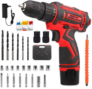 - 【What Will You Get?】Our electric screwdriver kit includes: 1*12V Cordless Drill Driver, 25*Driver Bits Accessories, 2*1500mAh Lithium Batteries, 1* Charger, 1* Carrying Box.We support 1 year replacement and 30 days money back warranty