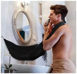 - EASY TO USE - It comes with suction cups that lock into place, making them ideal beard bib for shaving mirrors. Begin with your normal grooming regimen. Once complete lower over the trash can and gently shake beard apron. Will not Adsorption hair and water, beard bib will not produce static electricity.