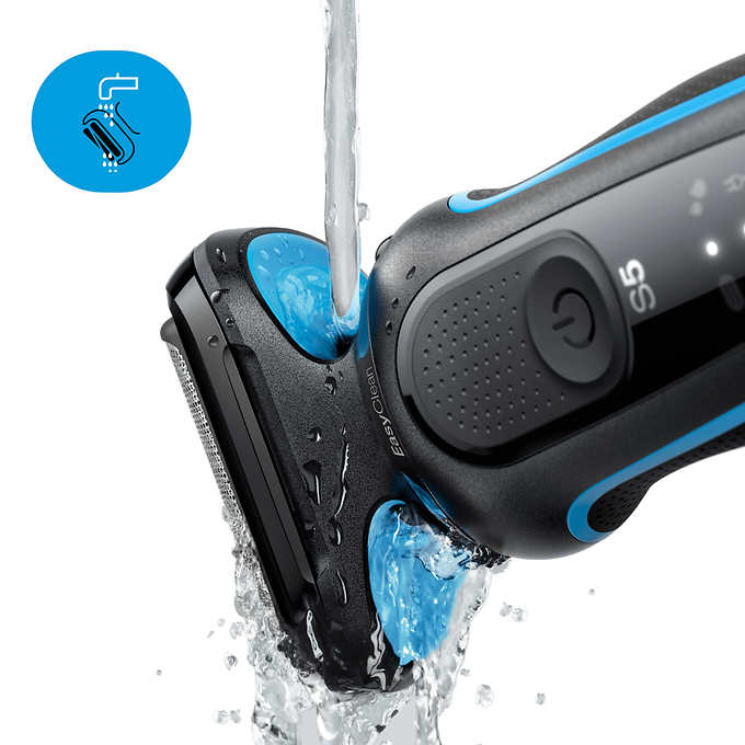 Braun Series 5 Easy Clean electric shaver for men makes shaving easy with 3 flexible blades that adapt to your facial contours. The EasyClean system delivers a fast and easy cleaning without removing the shaver head. The Li-Ion battery provides up to 3 weeks of shaving and a 5 min quick charge. This men's electric razor is 100% waterproof for wet and dry use.