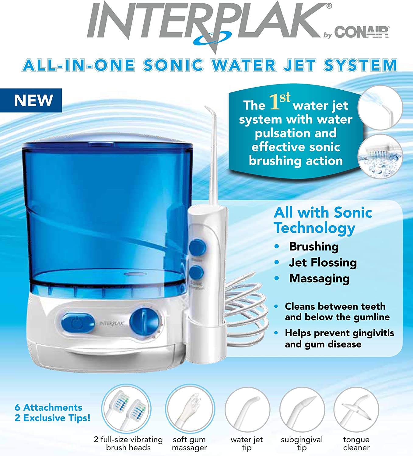 • Includes 6 tips1 water-jet tip, 1 Subgingival tip, 2 full-size brush heads, 1 massager and 1 tongue cleaner