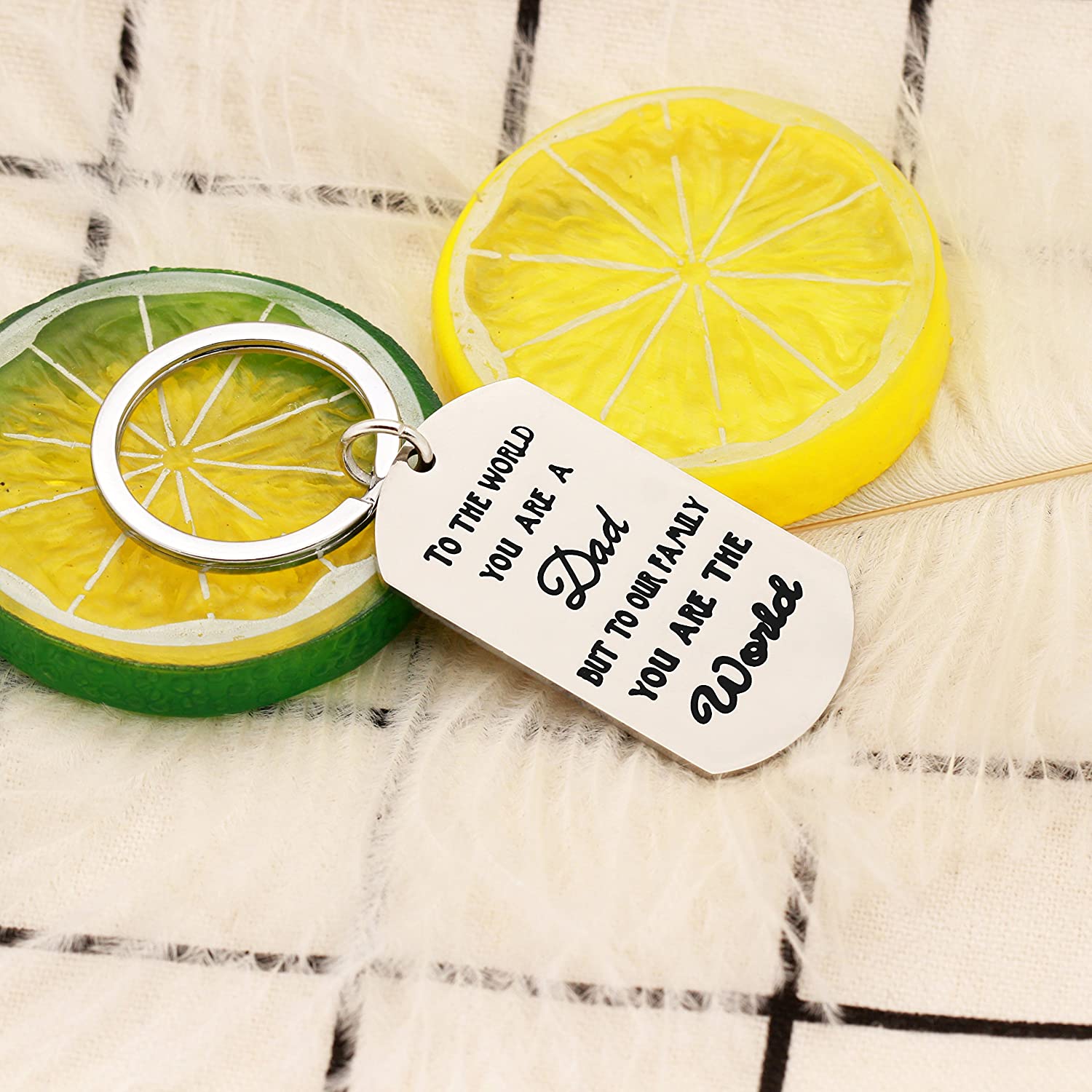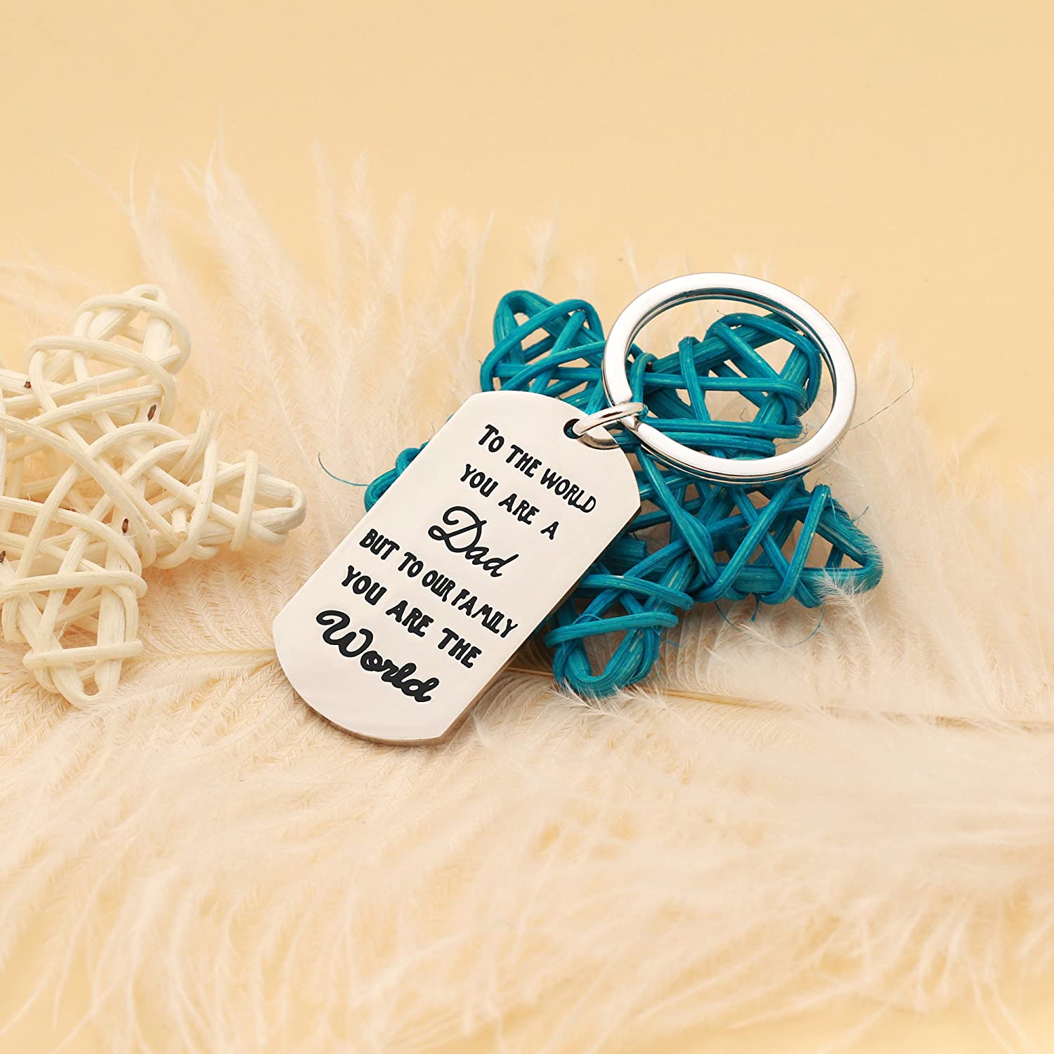 • Father Key Chain Ring Father Day Gifts Dad Papa Family Key Holder - To The World You Are A Dad But To Our Family You Are The World