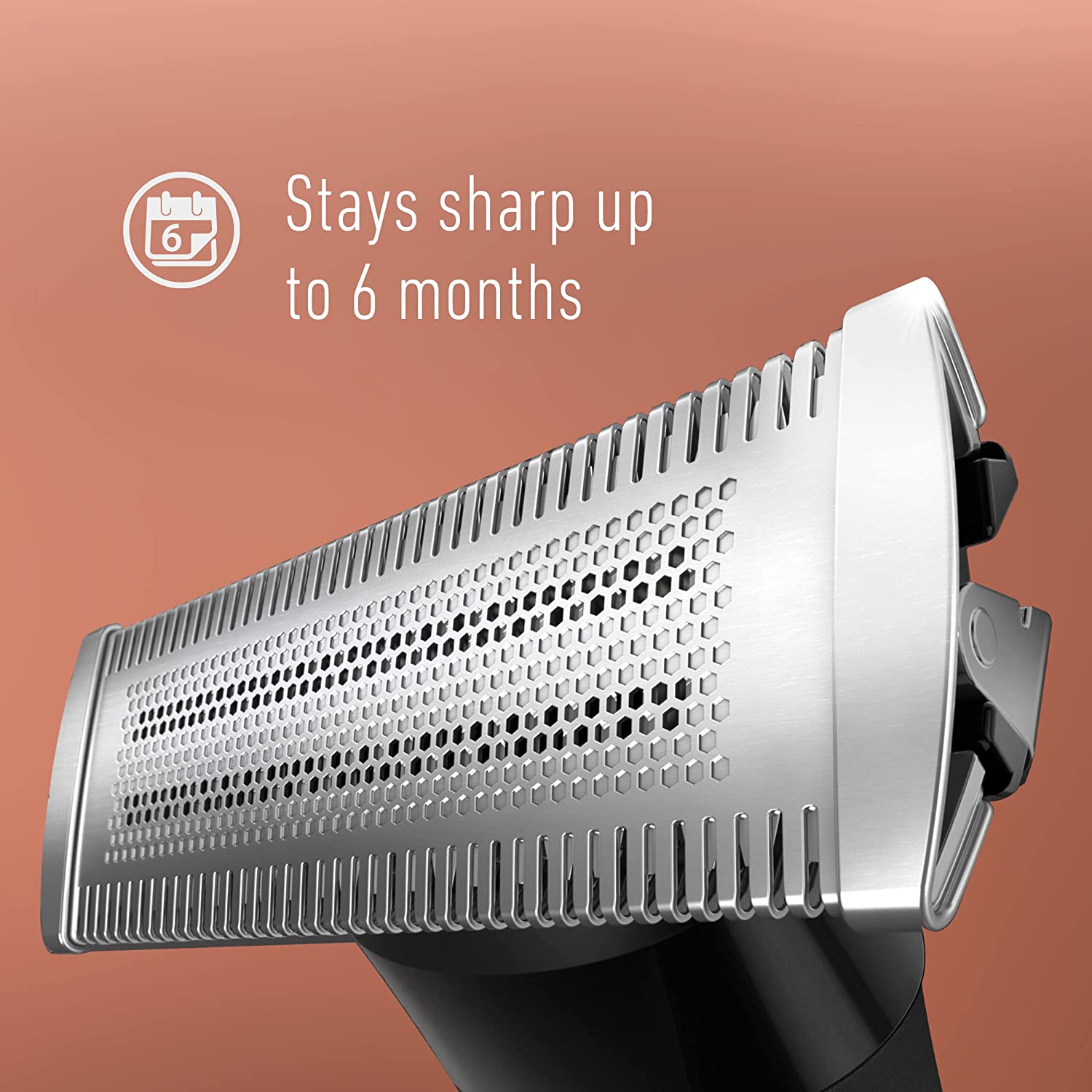 • Replaceable, long-lasting blade that stays sharp for up to 6 month of close shaves