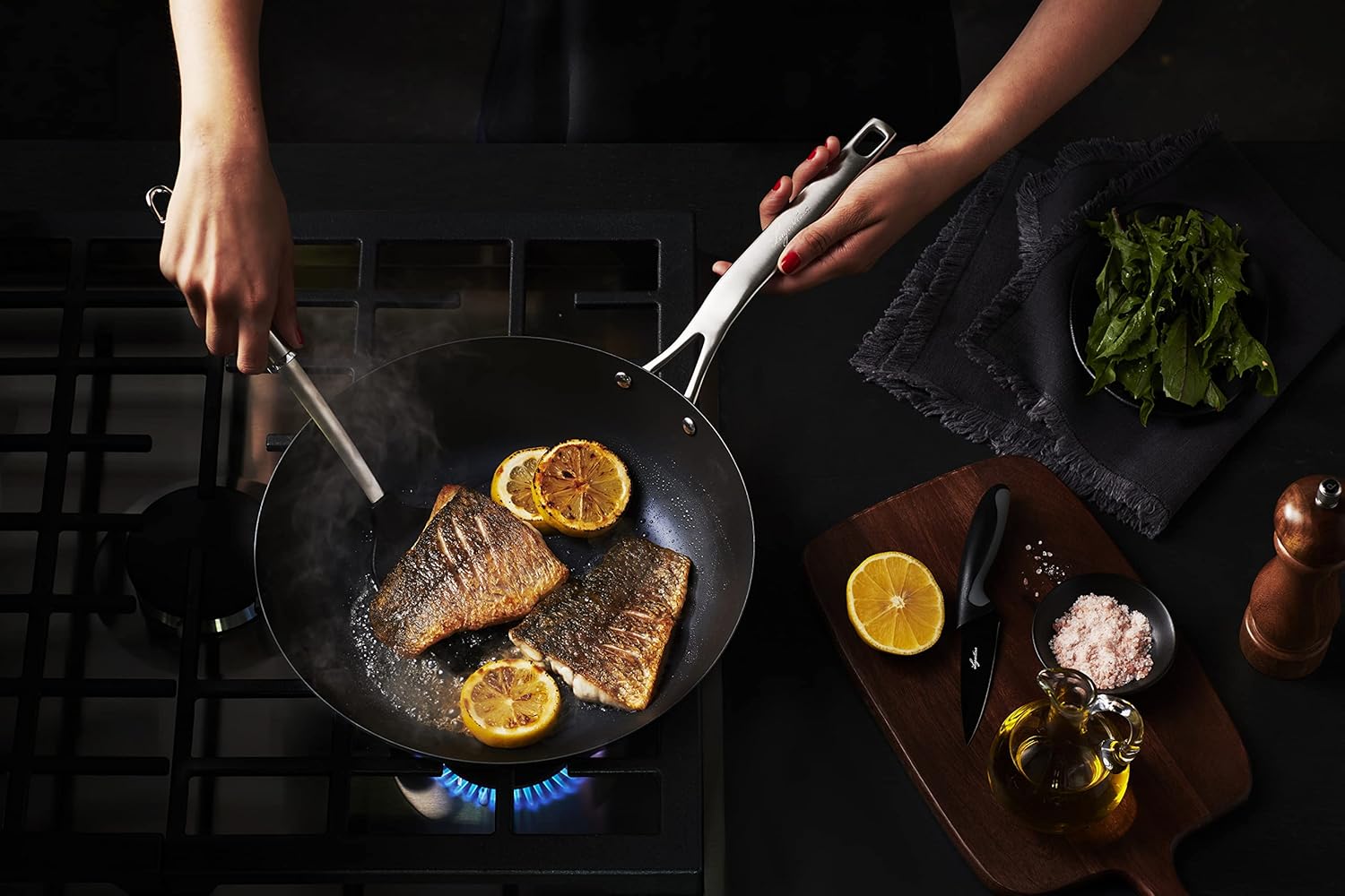 Lagostina Blue Carbon Steel, 24 Cm Skillet And 30 Cm Wok, High Heat Resistance, Multi-Hob Including Induction, Oven Safe, Medium