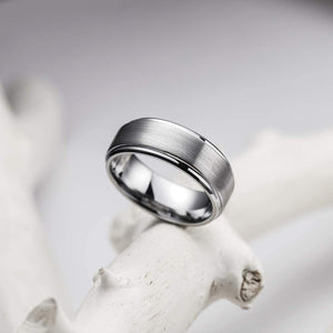 BASIC 8mm Men's Tungsten Carbide Ring Polished Beveled Edge Matte Brushed Finish