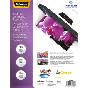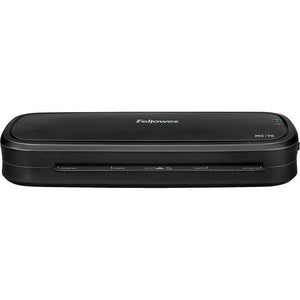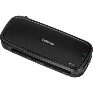Designed for home or home office use, the Fellowes® M5-95 laminator accommodates 24 cm (9.5 in.) wide documents and features advanced temperature control for consistent results. It offers a heat setting for 3-mil and 5-mil hot pouches. It heats up in 4 minutes and the release lever disengages pouch for re-centering or removal. The set includes a laminating starter kit.