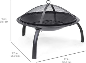 Cuisiland Wood Burning Dia 22" Folding Fire Pit with Spark Screen, Poker, Cooking Grid for Patio, Backyard, Camping