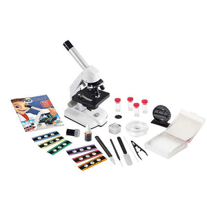 A metal microscope with glass lenses and eyepieces for high-quality observations! Observe the world of the minuscule with a metal microscope with glass lenses. Read our illustrated instructions with 50 experiments