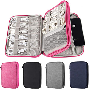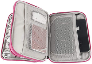 - 【Keep all in one place】 This electronic organizer bag has double layer nylon interior compartment with enough room to hold various electronics/computer accessories like Chargers, Cables, Flash disk, USB drive, Power bank, Headphone, Mouse and etc, with a big zip-lock pocket for tablet pad up to 7.9 inch, like iPad Mini but not iPad Air or similar size tablet.