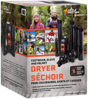 Utilizing a gentle forced airflow heated to around (105°F), the Little Hotties Footwear & Glove Dryer will dry most garments in about an hour without damaging expensive leather or other fragile materials. Regular use will help increase the longevity of your footwear and gloves and keep odor causing bacteria at bay.