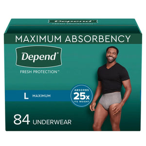 Reclaim and reconnect with what matters most in your life in the new and improved Depend  Incontinence Underwear for men. Now in more sizes for better comfort, Depend disposable underwear feature confidence Core technology-depend fastest absorbing material-to instantly absorb wetness for dry, comfortable protection. Drawing wetness away from the skin,