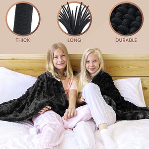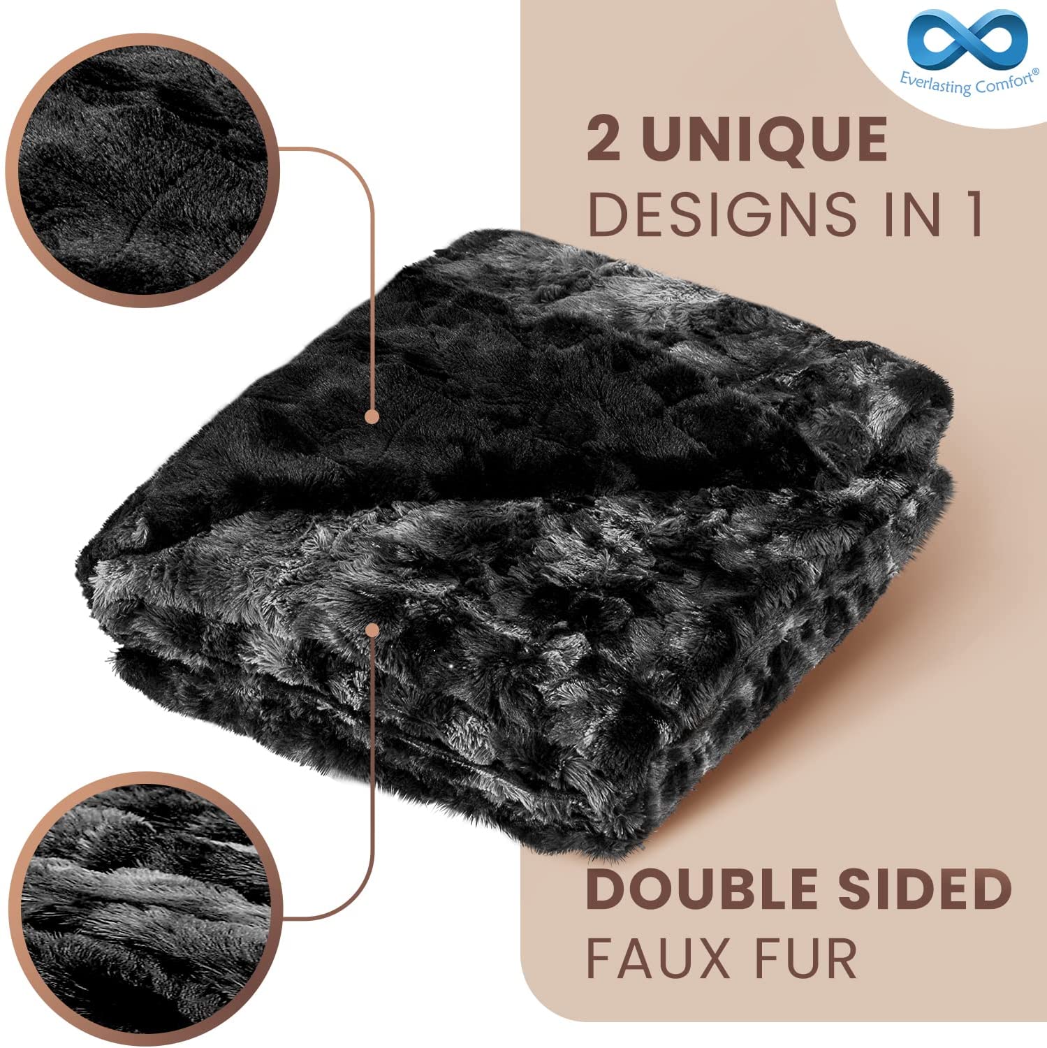 Everlasting Comfort Luxury Faux Fur Throw Blanket (Black)