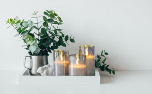 - These gray glass led candles has real flame effect, real wax in glass holder, flickering softly and giving off a warm white glow, creating a cozy feeling