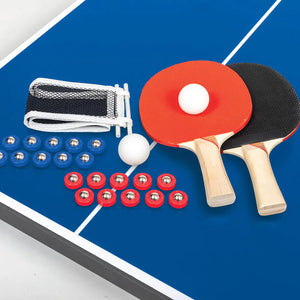 - Includes 2 pips-out paddles, 2 table tennis balls, 1 net and post set, and 20 ball bearing sliders in 2 team colours