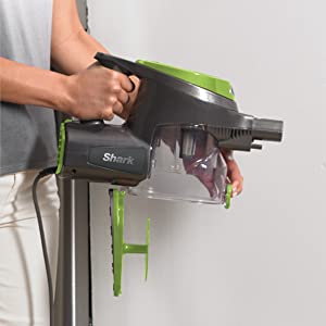 Hang the handheld vacuum from the hook on the bottom of the wand for convenient storage.