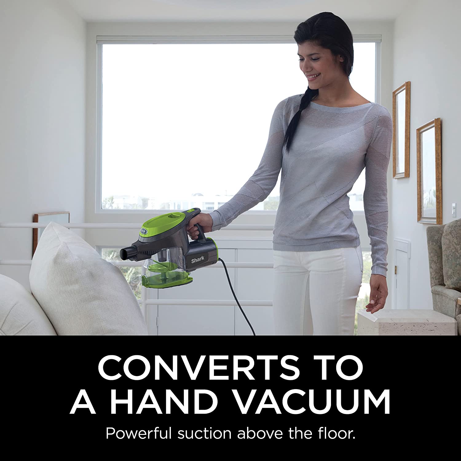 Easily converts to a handheld vacuum for versatile floor-to-ceiling cleaning.