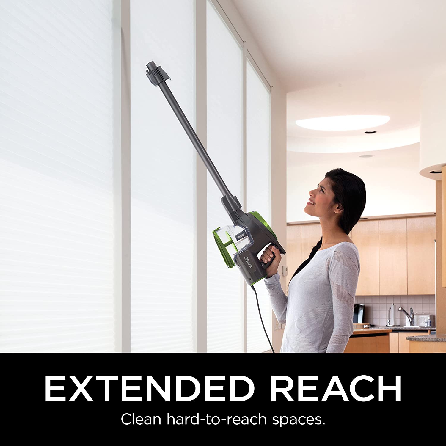 Slim design allows you to reach under furniture easily.