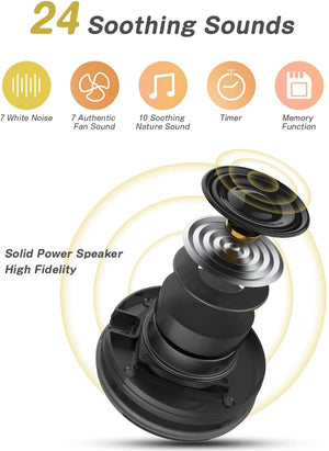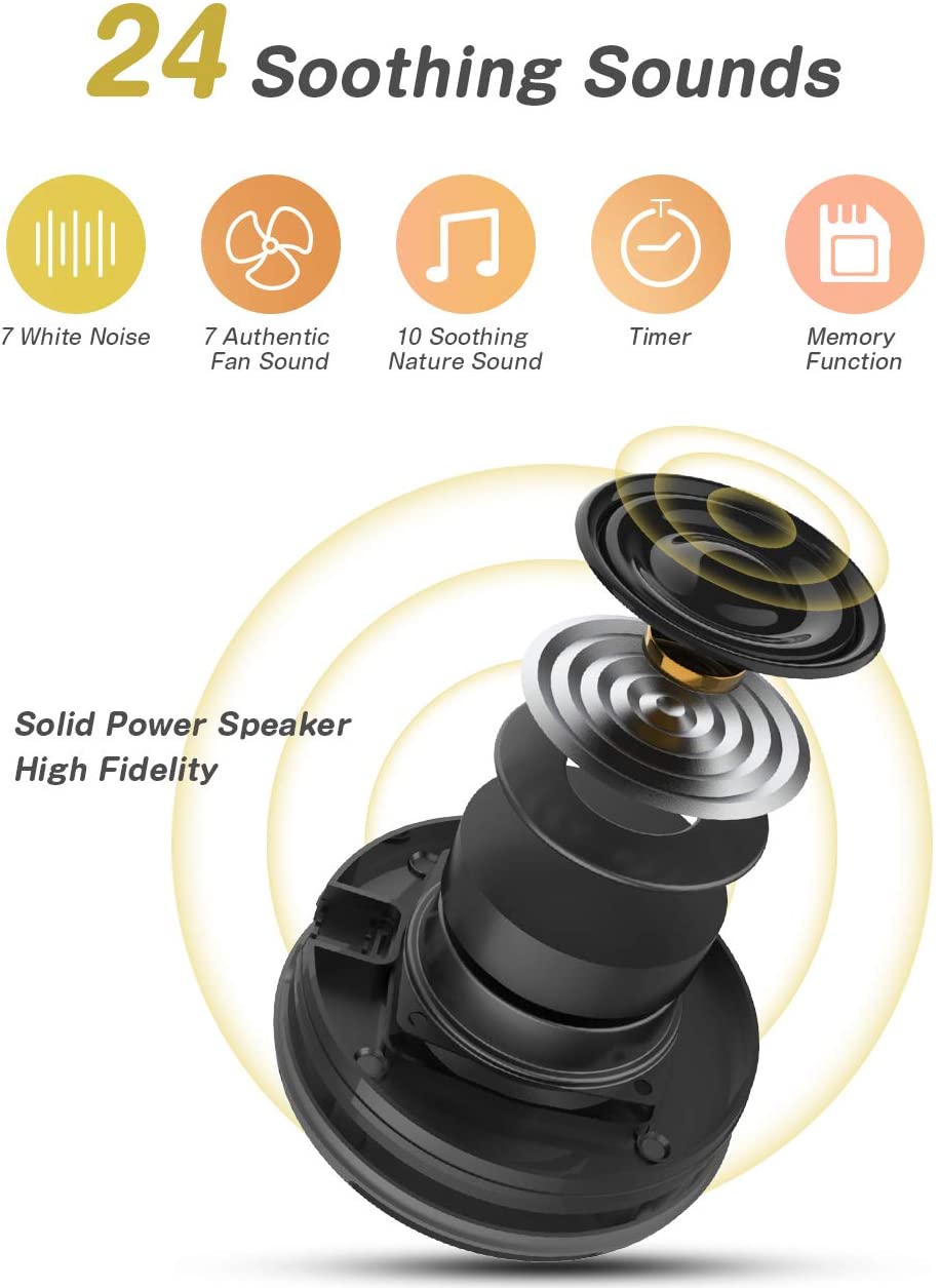 Sound Machine for Sleeping & Relaxing, 24 Non-Looping HIFI Sounds, 3 Auto-off Timer, Soothing Night Light,