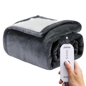 Sunbeam Northern Luxe Sherpa Heated Throw 50” x 60” (Dark Grey)