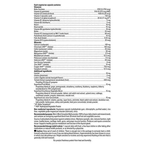 Men’s Most Complete Multi from webber naturals provides 100% of the recommended dietary allowance (RDA) for many of the vitamins and minerals needed to support skin, immune function, bone health, and more, for men under 50. Each one-per-day capsule contains bioavailable forms of important nutrients, including vitamin K2 and chelated minerals, in a wholesome base of 3 superfood groups: fruits, cruciferous vegetables, and a juice concentrate.